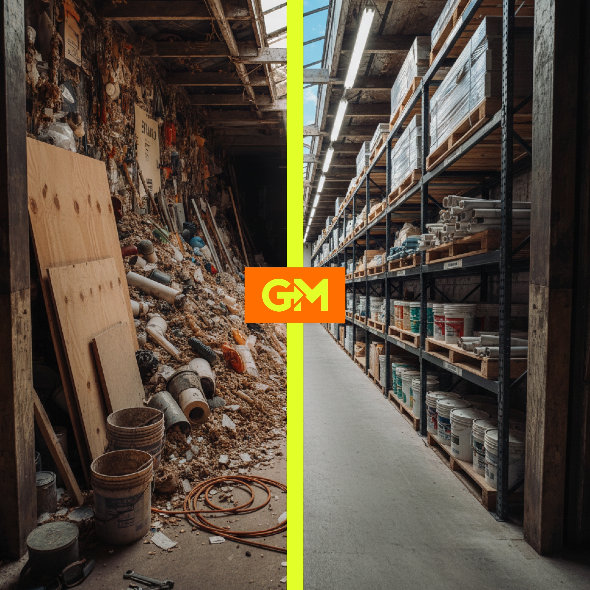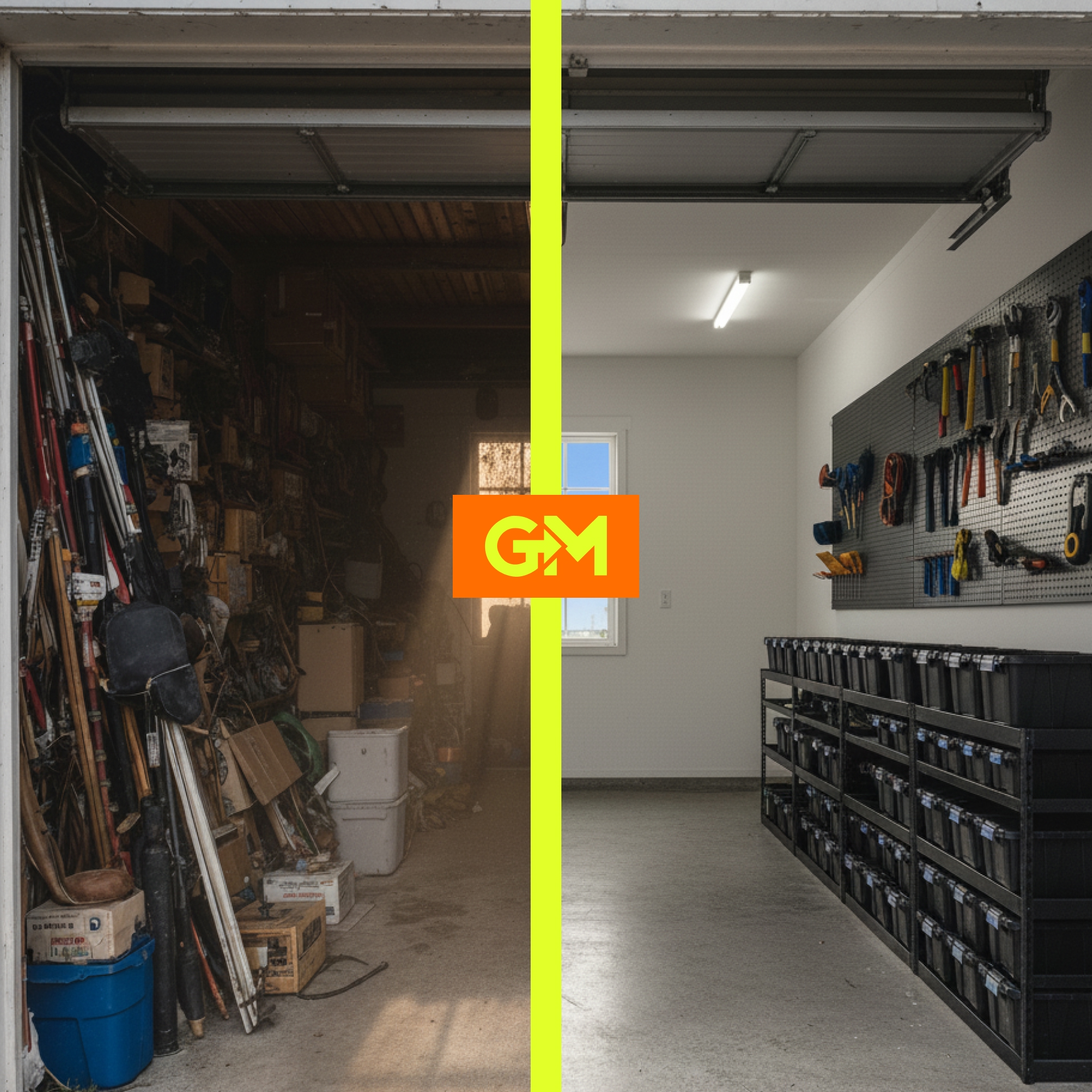 ✅ Tri des objets dans des boîtes ou bacs, puis rangement sur les étagères. Les déchets et le recyclage sont sortis.